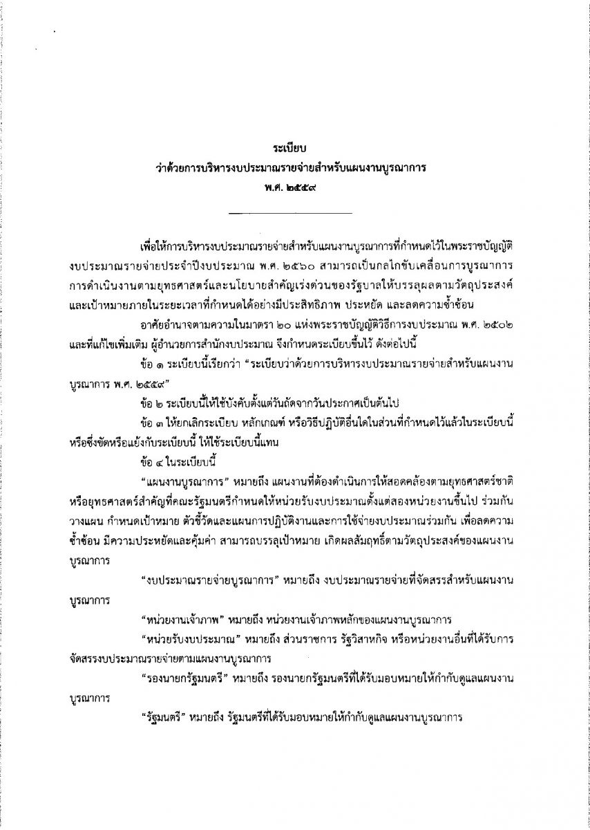 ระเบียบว่าด้วยการบริหารงบประมาณรายจ่ายสำหรับแผนงานบูรณาการ พ.ศ. 2559