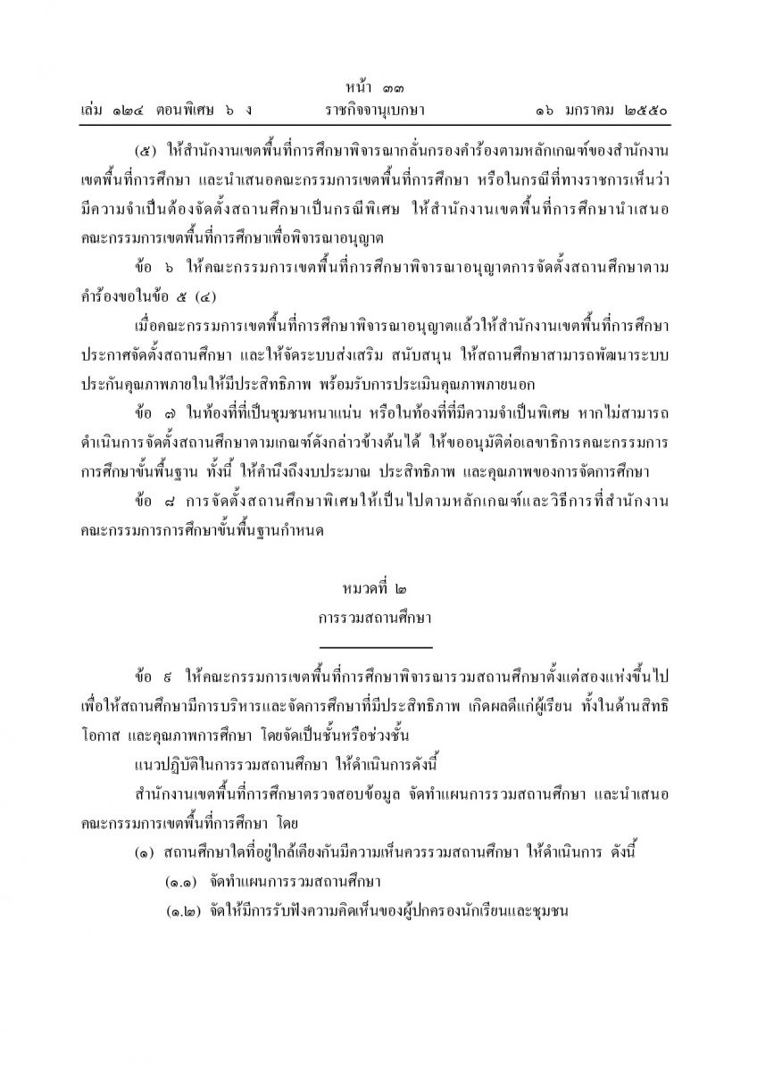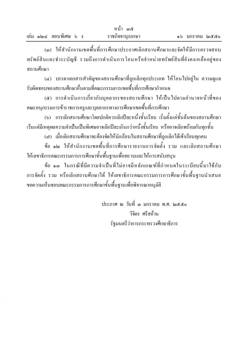 ระเบียบกระทรวงศึกษาธิการว่าด้วยการจัดตั้ง รวมหรือเลิกสถานศึกษาขั้นพื้นฐาน พ.ศ.2550