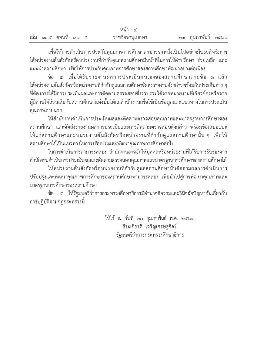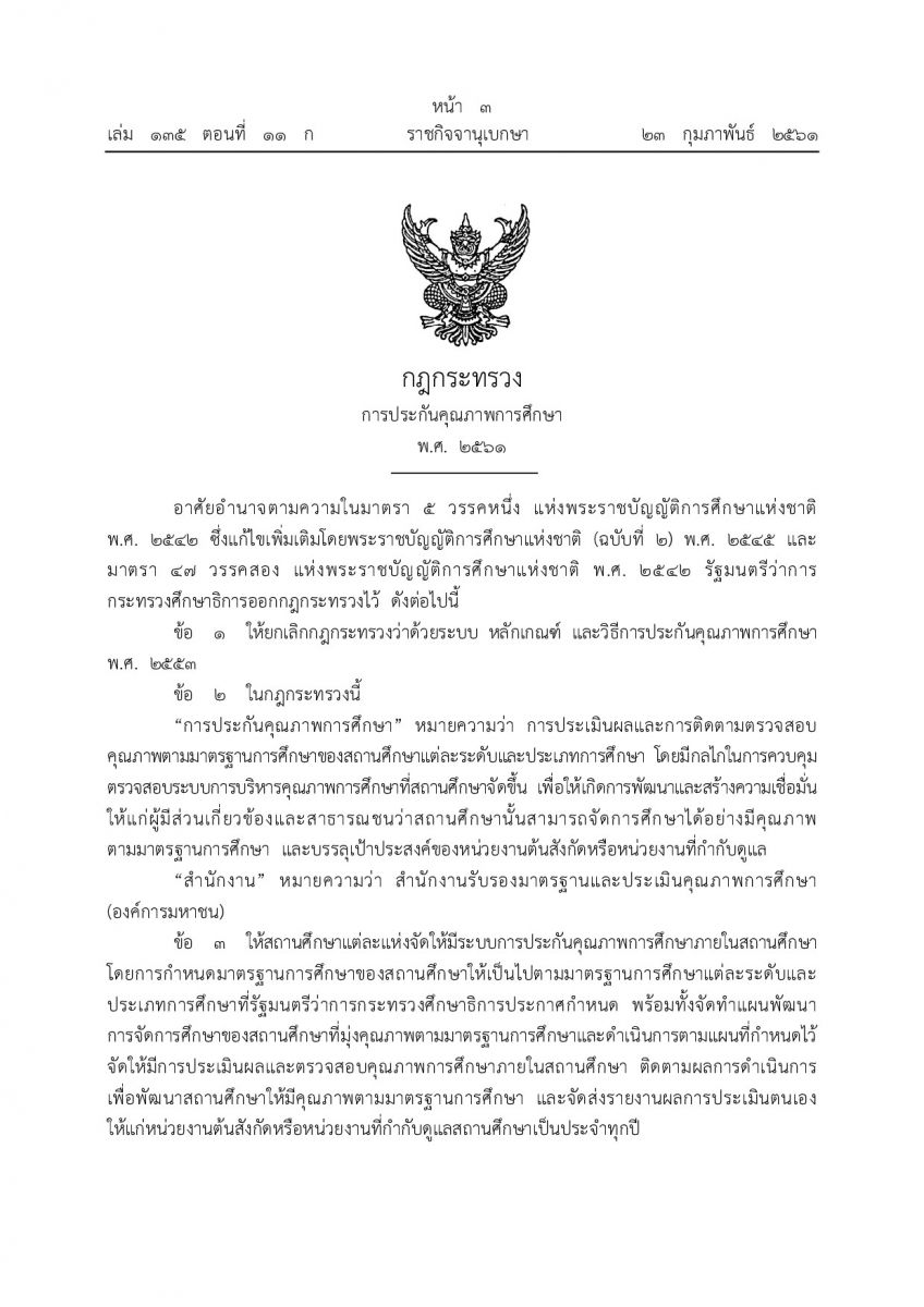 กฎกระทรวงการประกันคุณภาพการศึกษา พ.ศ.2561