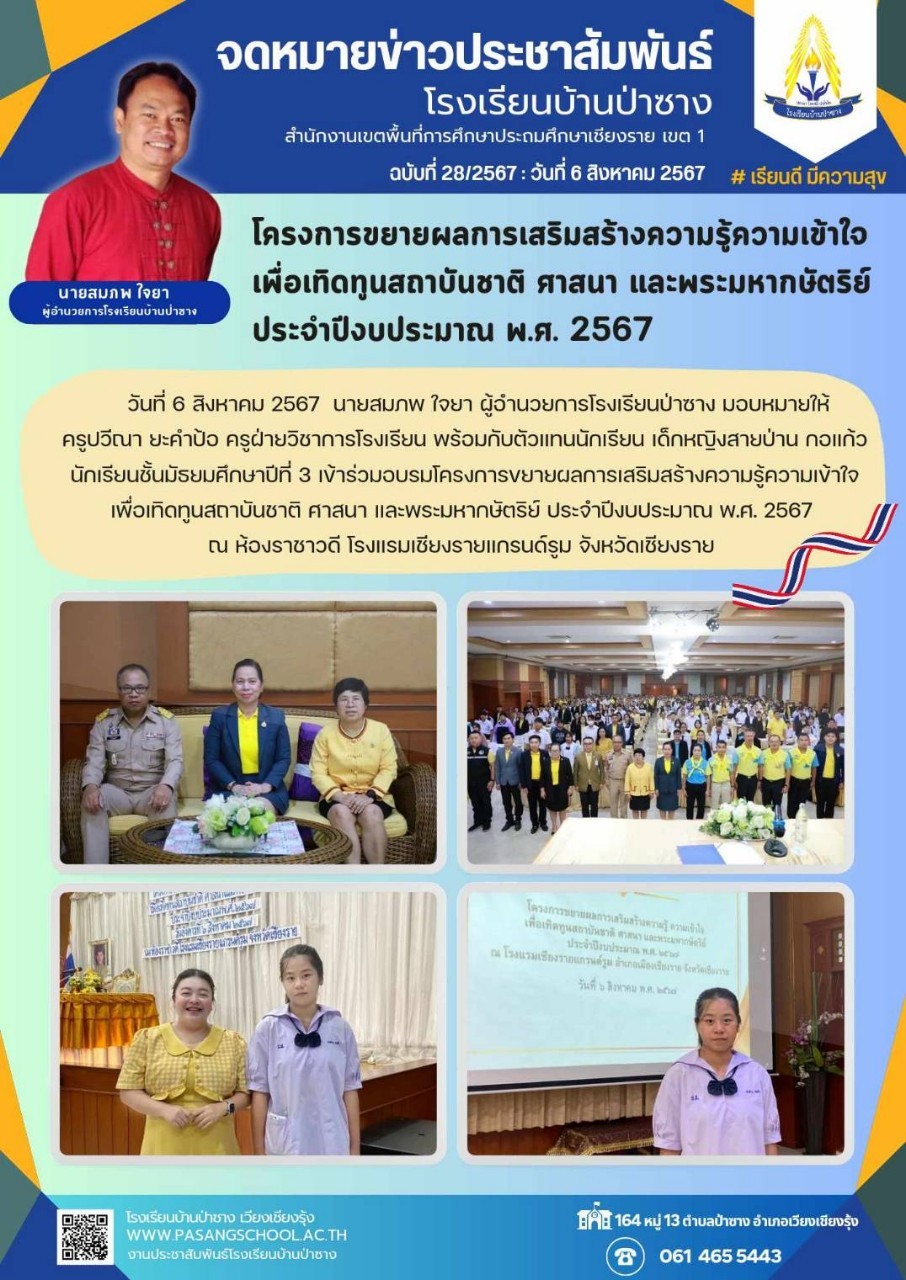 โครงการขยายผลการเสริมสร้างความรู้ความเข้าใจเพื่อเทิดทูลสถาบันชาติ ศาสนาและพระมหากษัตริย์ ประจำปีงบประมาณ 2567