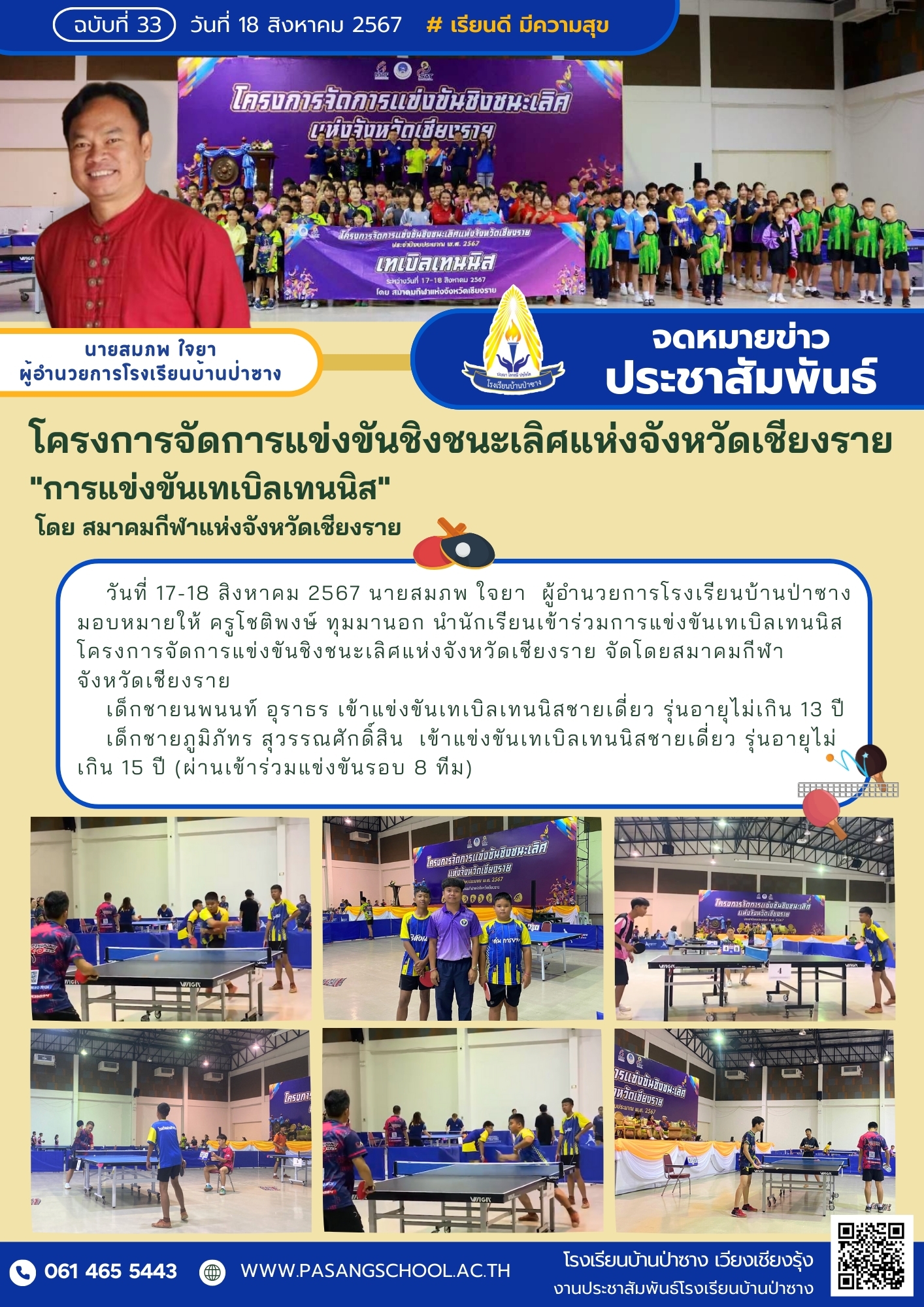 โครงการจัดการแข่งขันชิงชนะเลิศแห่งจังหวัดเชียงราย การแข่งขันเทเบิลเทนนิส