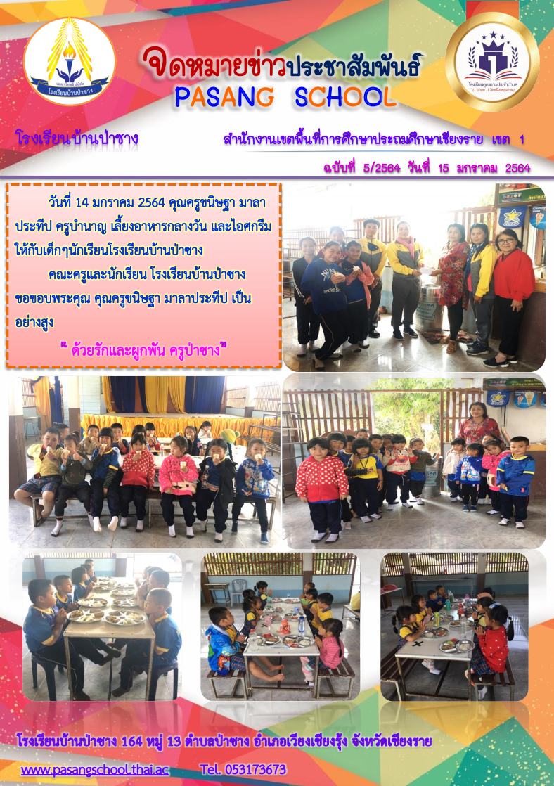 คุณครูขนิษฐา มาลาประทีป ครูบำนาญ เลี้ยงอาหารกลางวัน และไอศกรีม นักเรียนโรงเรียนบ้านป่าซาง